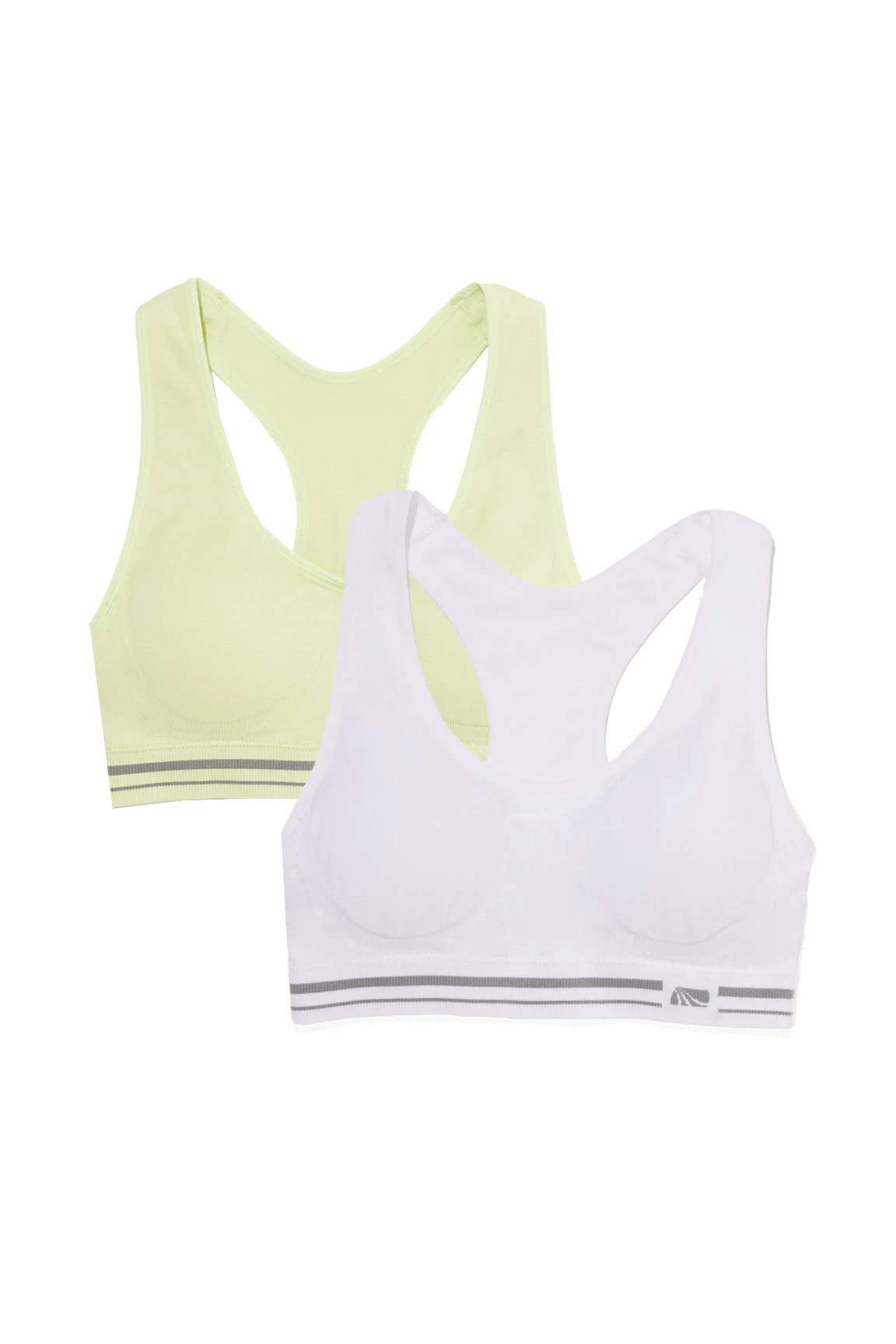 Two is better than one with these seamless, low-impact sports bras, featuring scoop necks, racerbacks, ribbed trim, and a comfort that moves with you.