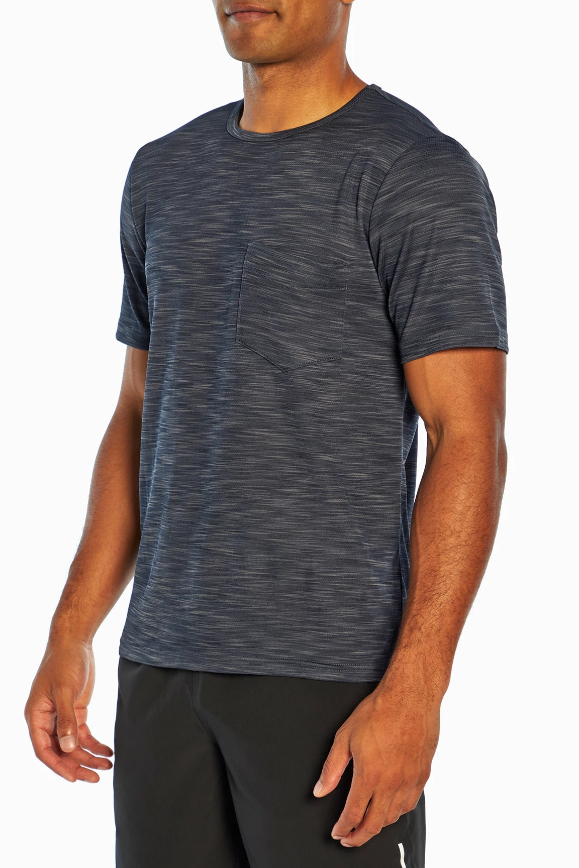This double-knit tee, perfect for a day of movement, features a crew neck, single chest patch pocket, vented hem, and reflective detail.