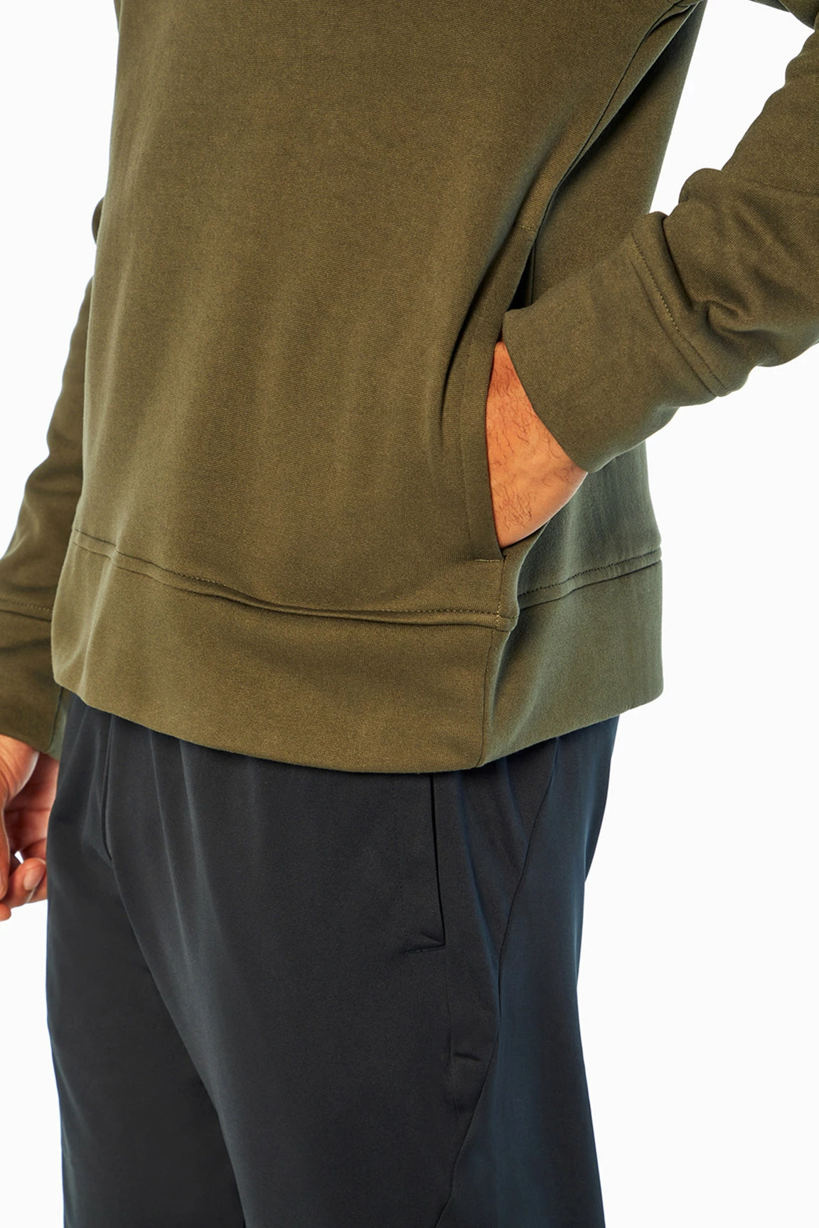 When there’s a chill, pull this fleece pullover on, with its crew neck, front shoulder seams, banded trim, and on-seam pockets at the hem.