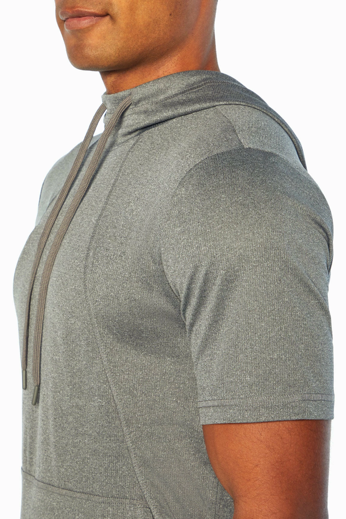 Made with a comfortable fit, this short-sleeve hoodie features a hidden zipper pocket at the front side of the chest, drawcords, contrast inset at the side and back, and front kangaroo pocket.