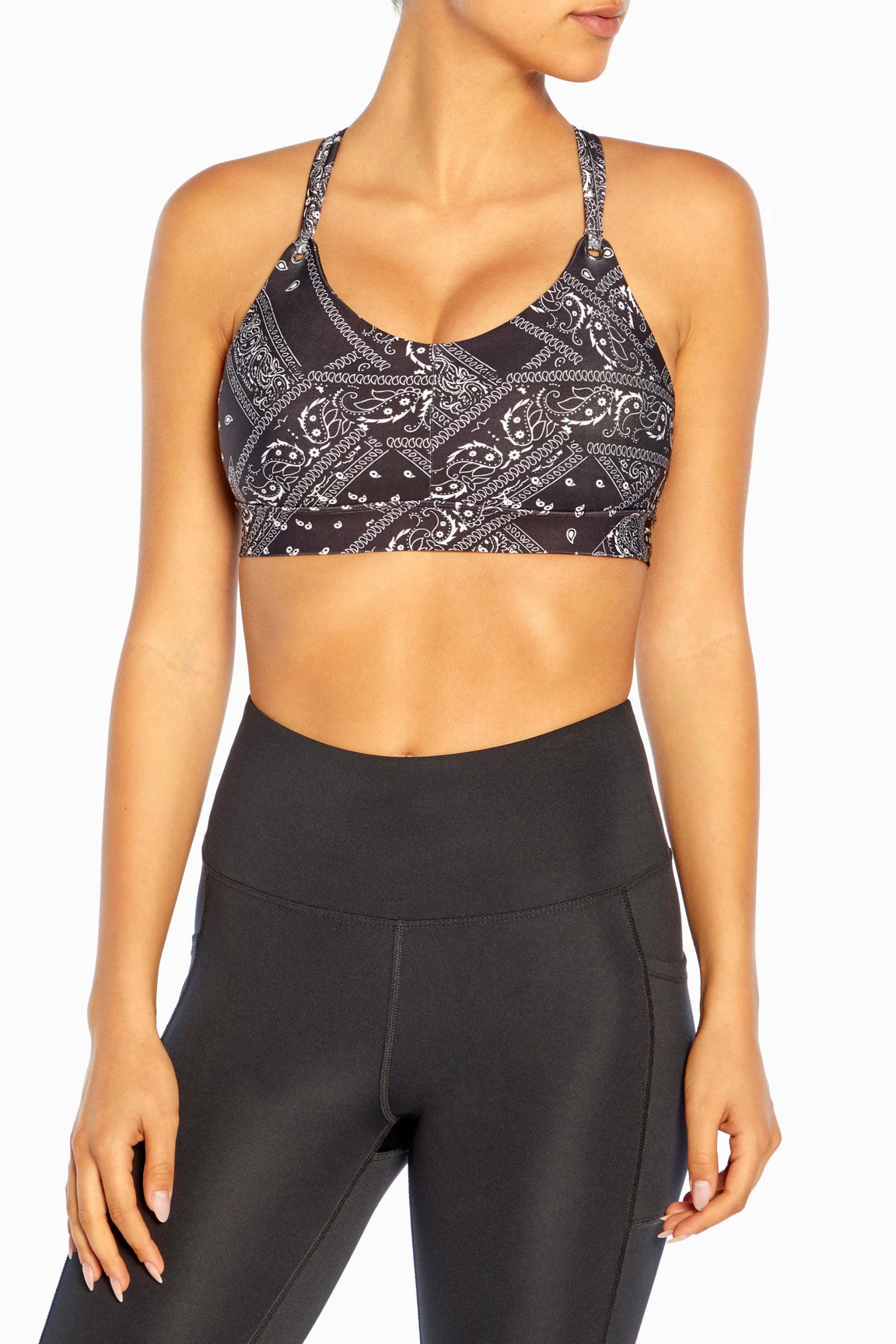 The keyhole Y-back on this moisture-wicking V-neck sports bra is stylish, but also makes for a breathable Cycle House powered by Marika must-have.