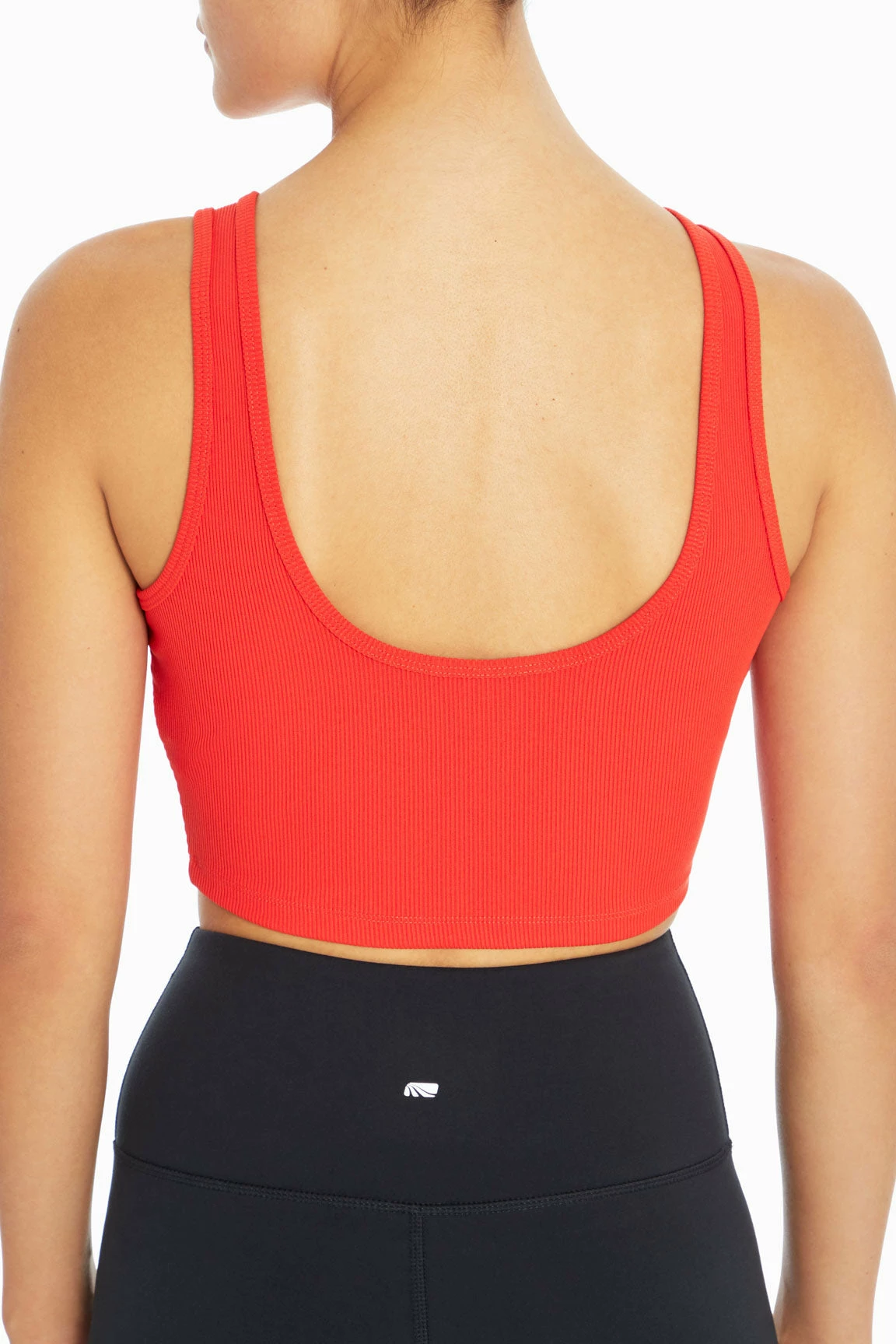 Break your previous indoor cycling records in this Cycle House powered by Marika crop tank, featuring moisture-wicking fabric and plunging scoop back.