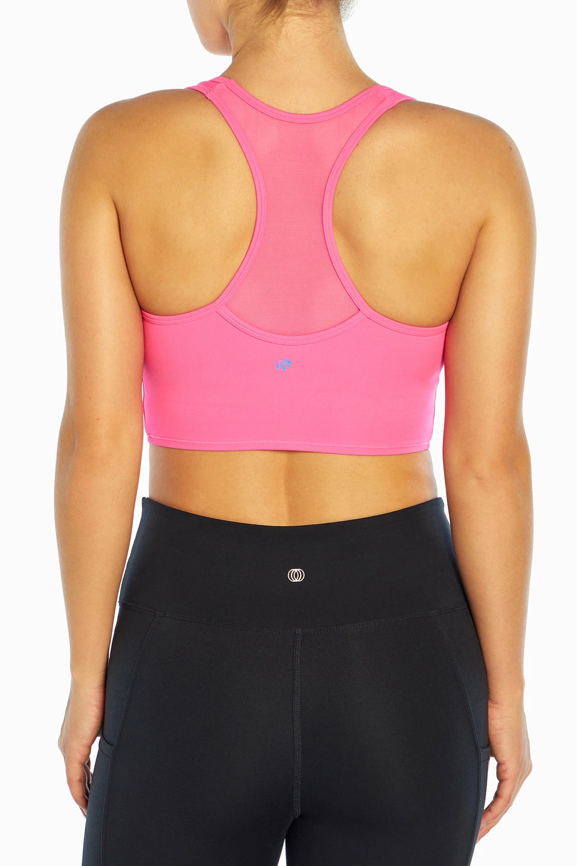 - Racerback Style With Power Mesh Detail, Non-Adjustable Straps
