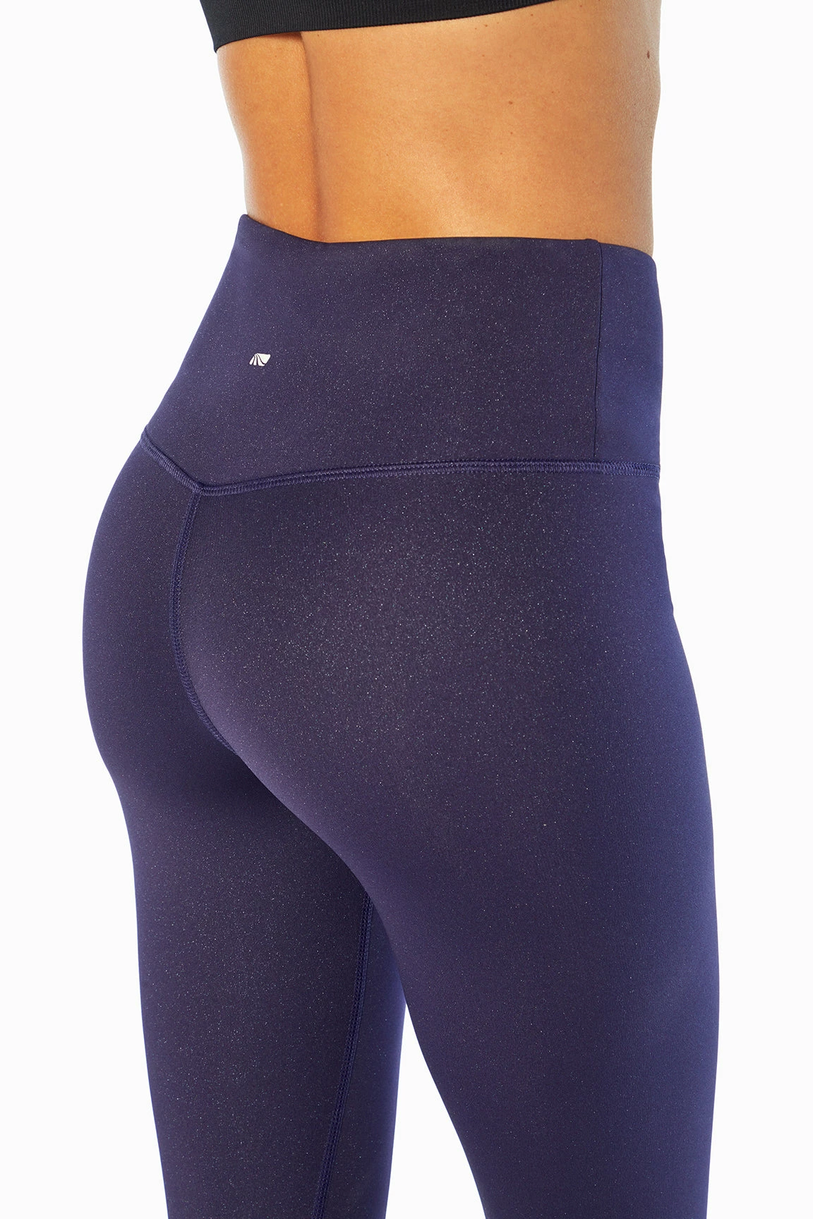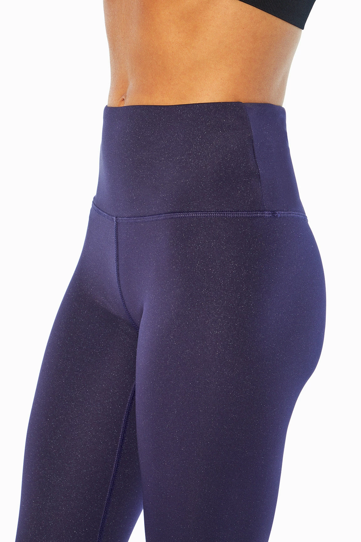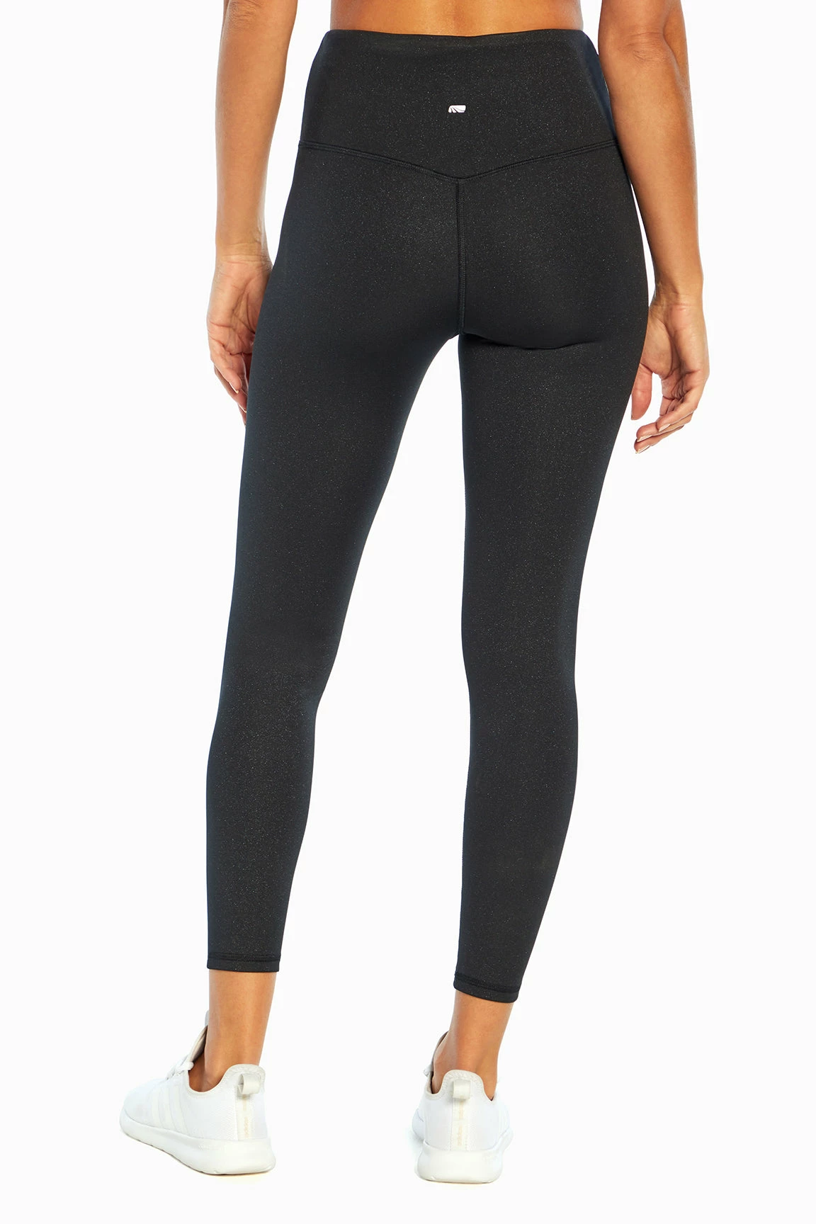 Characterized by a sparkly foil design, this moisture-wicking, full-length legging features maximum ventilation, a four-way stretch, and back on-seam waistband pocket.