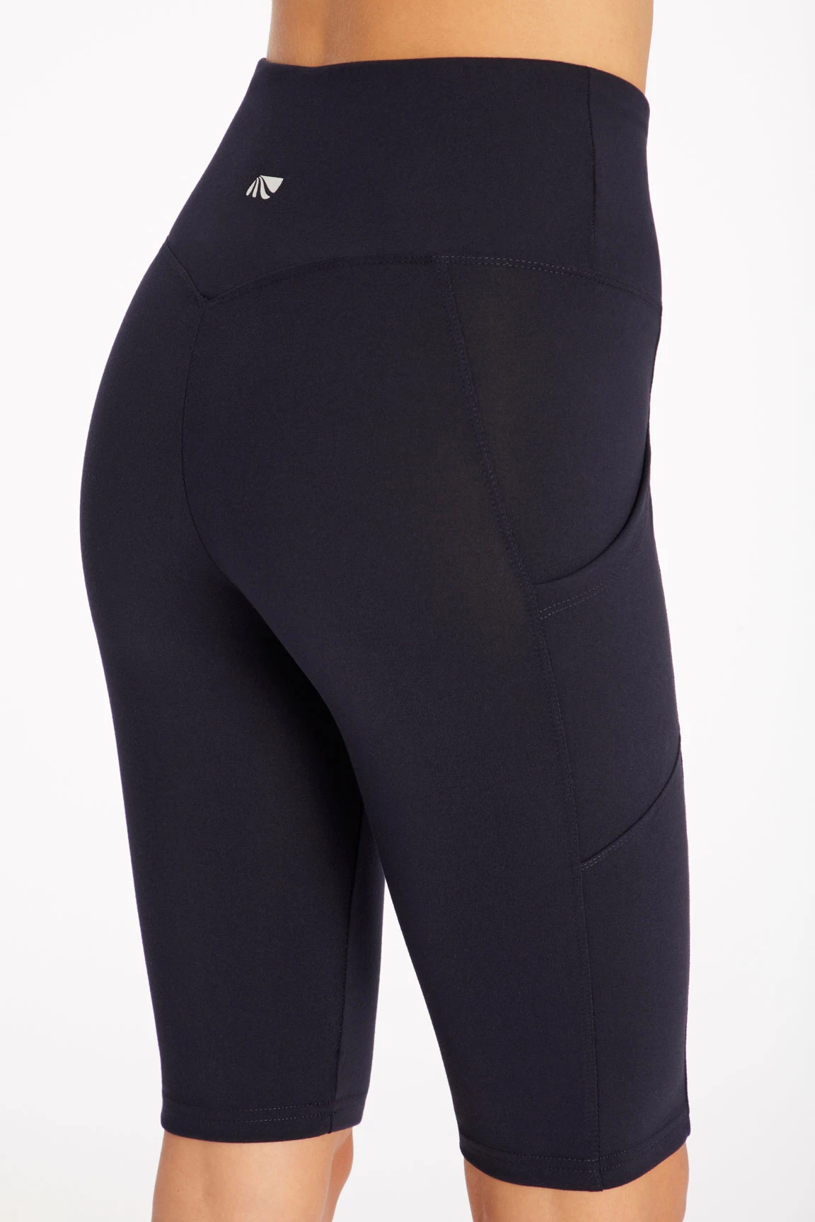 On the playground with the kids, or running on a track, these high-waist Bermuda shorts include moisture performance, as well as side patch pockets for easy phone-stowing.