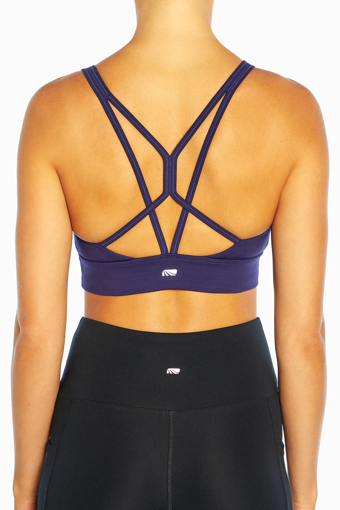 Designed to provide medium-impact support, this racerback sports bra is brushed inside and out for softness and features strappy details and a moisture-wicking finish.