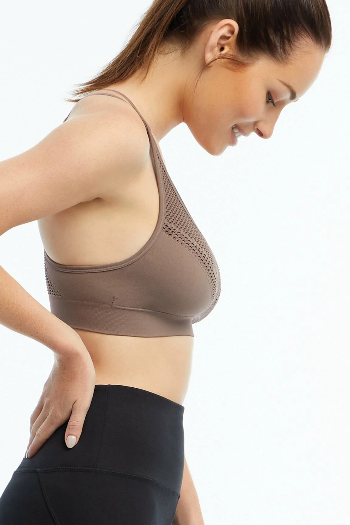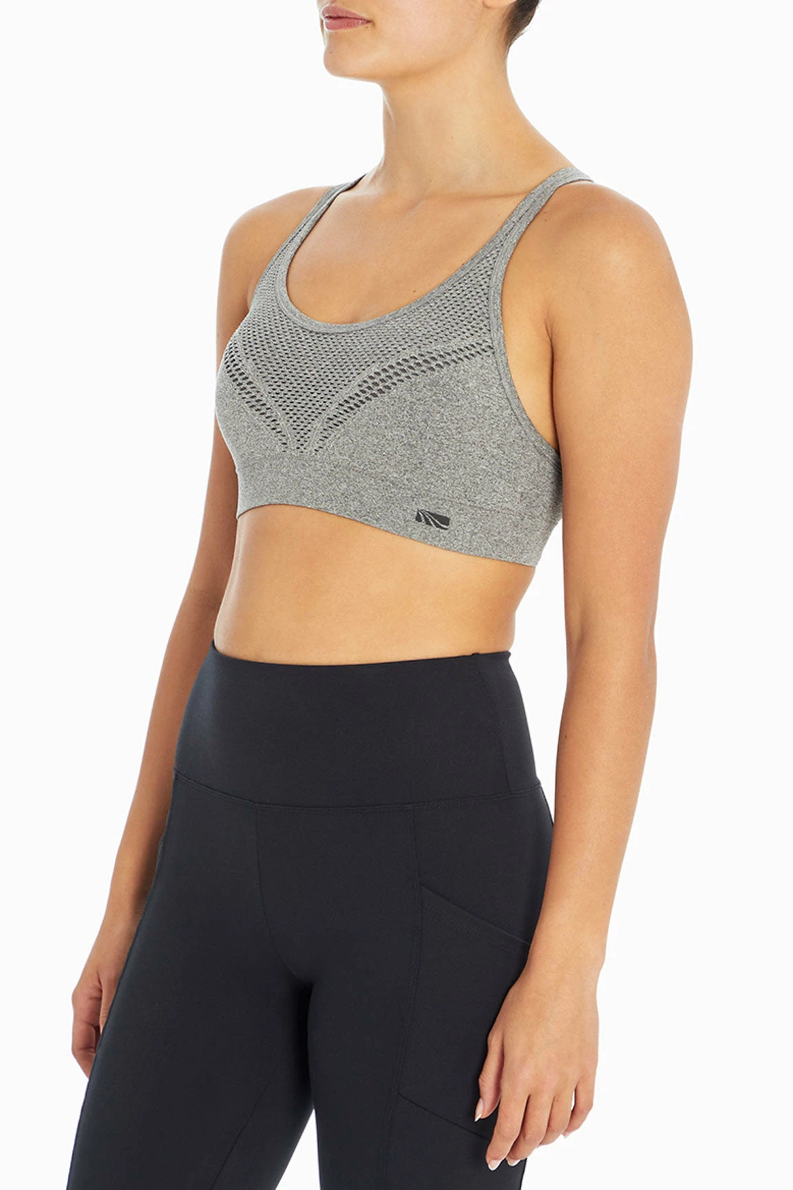 Stay ventilated while you whisper, “Namaste,” in this low-impact, seamless sports bra — the laser-cut detail throughout is both stylish and functional. The removable cup pads and double straps earn extra cool points!