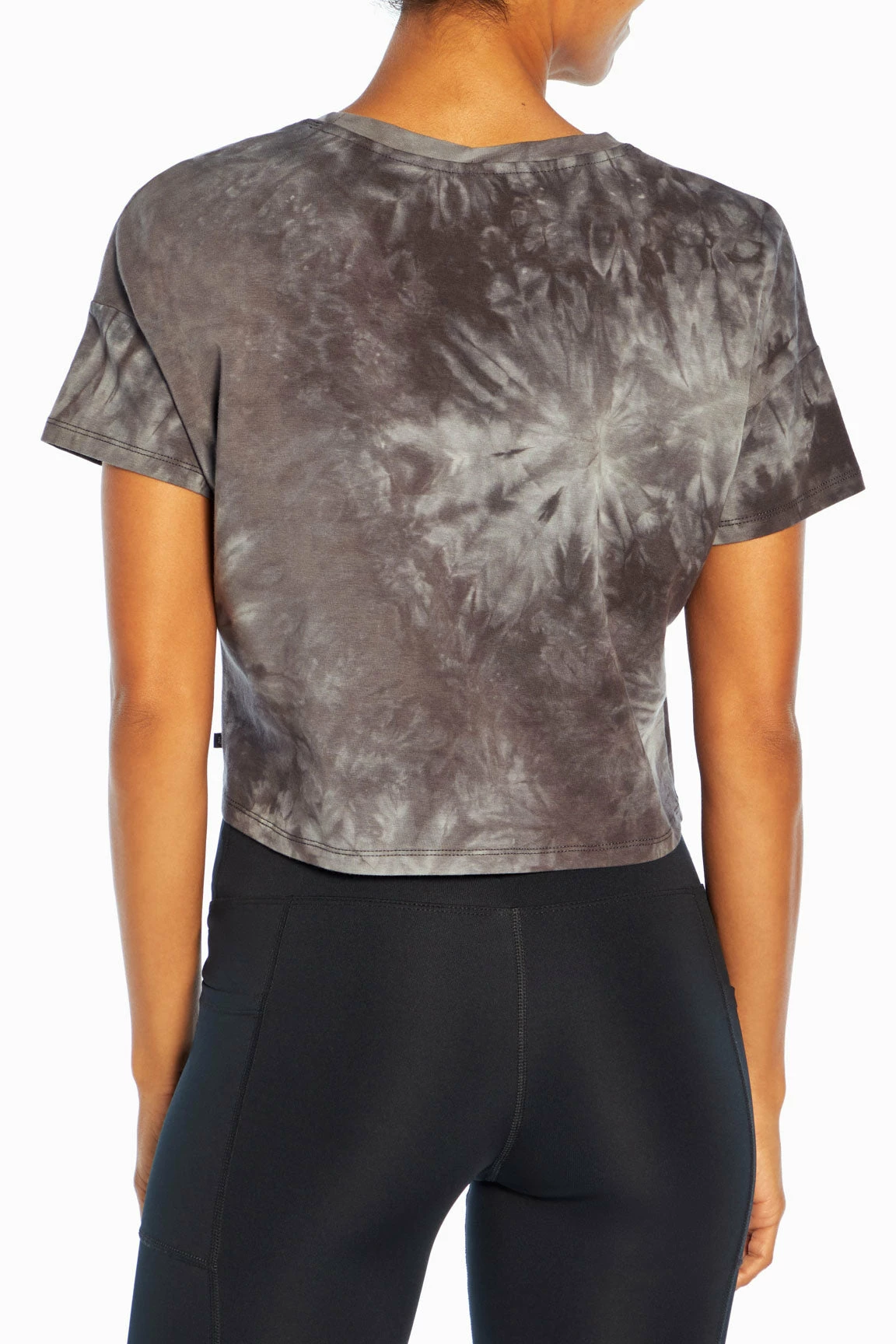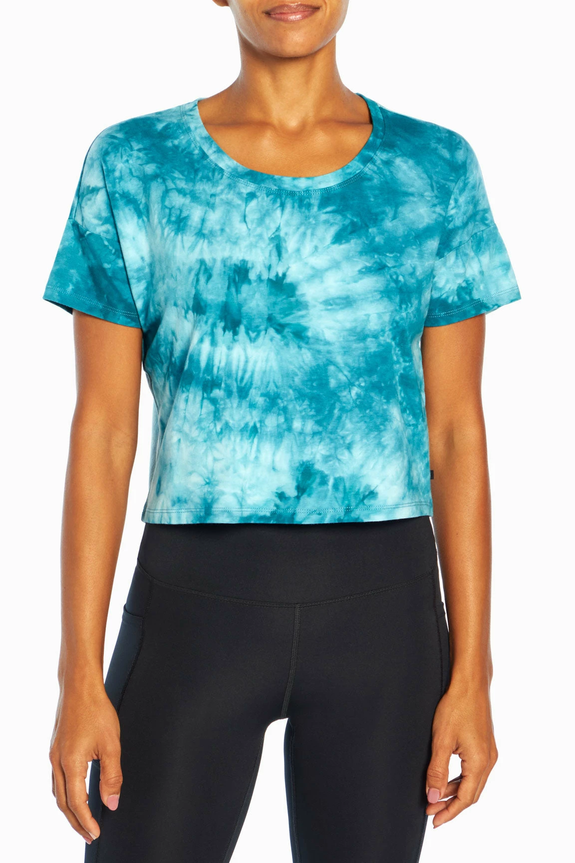 Step out for your family walk in true style with this boxy, tie-dye crop top, featuring dropped shoulders at the short sleeves.