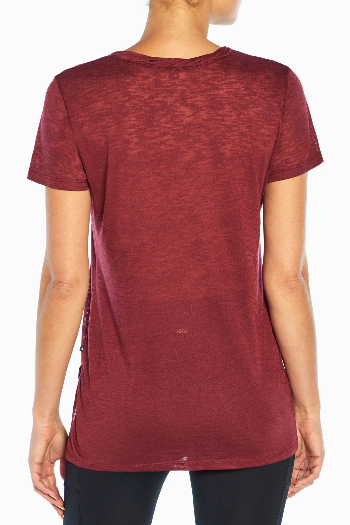 Feel the breeze as you take a brisk walk in this burnout jersey top that features a scoop neck, side slits, and high-low hem.