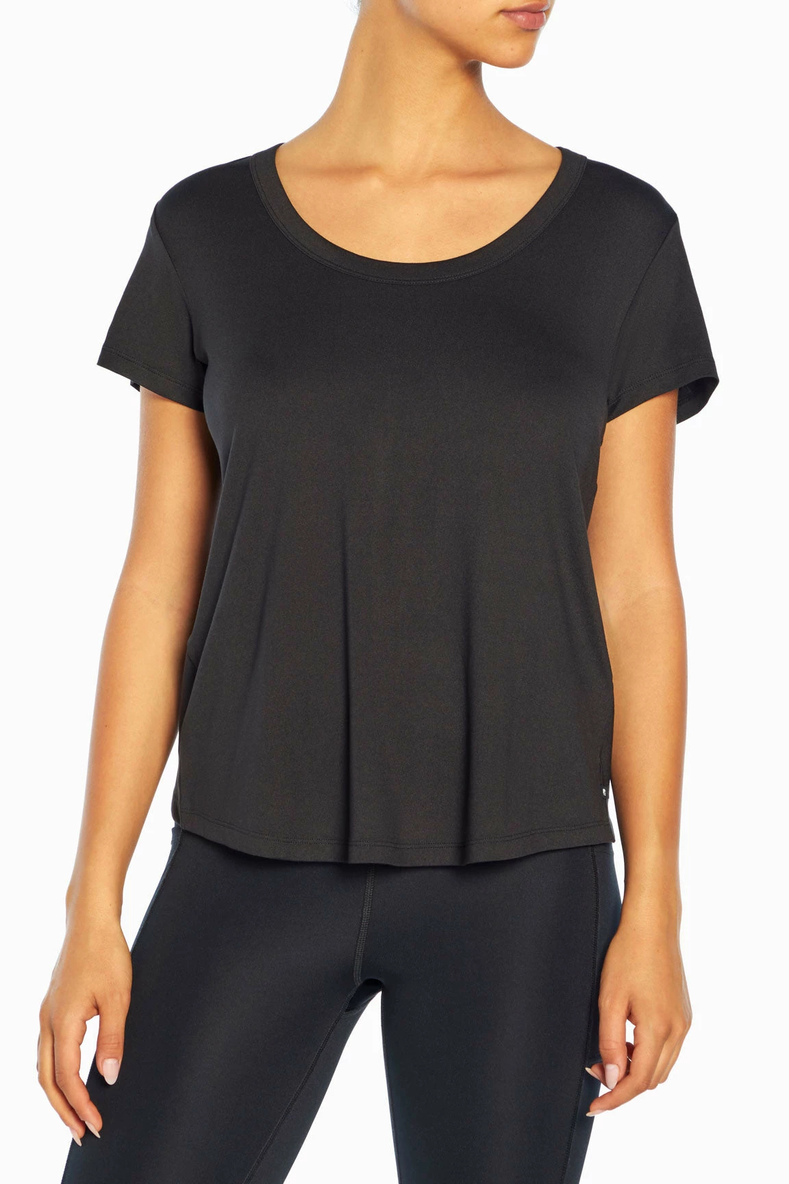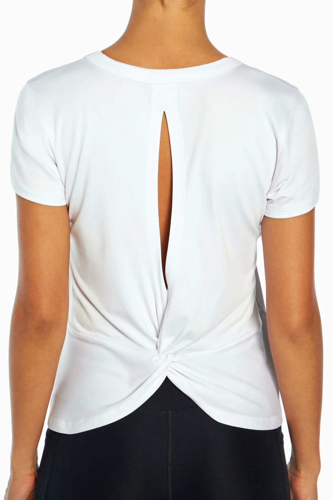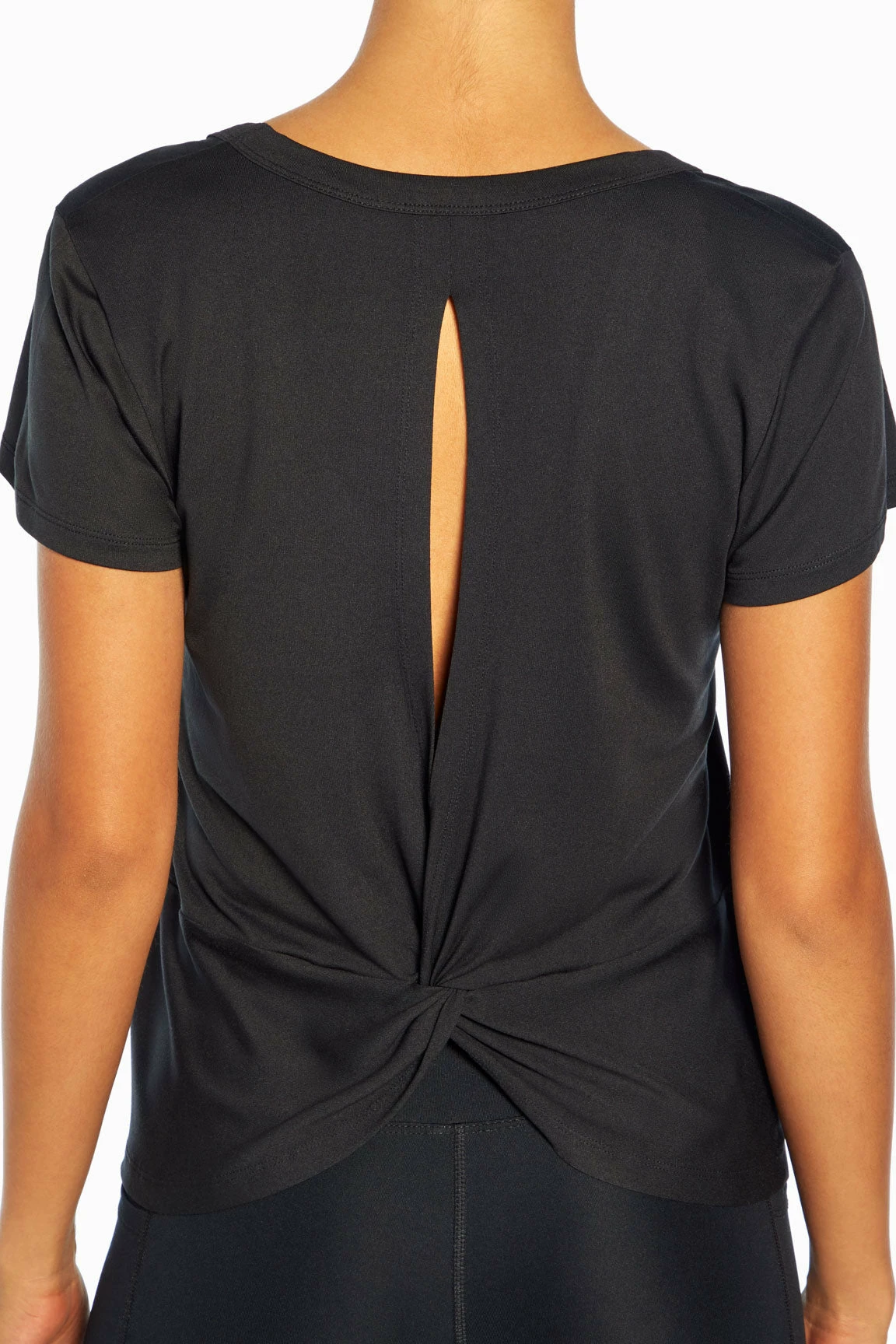 Change things up with this soft, moisture-wicking tee, made from recycled materials — your stylish rest day will feature a scoop neck and back keyhole with twist detail.